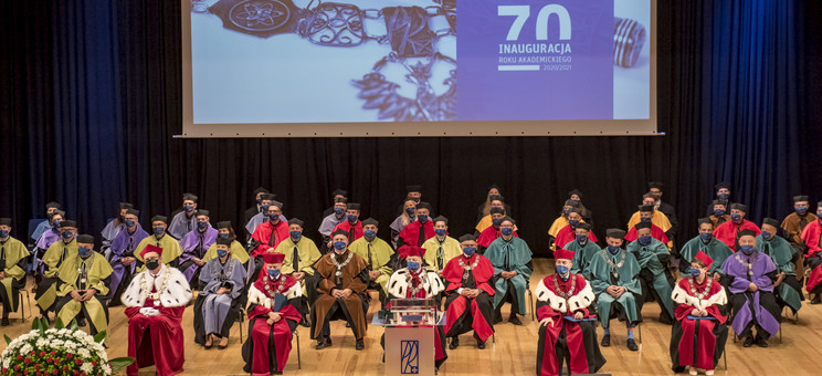 Ze względu na sytuację epidemiczną uroczystość inaugurująca jubileuszowy 70. rok akademicki na naszej uczelni odbyła się w warunkach zaostrzonego reżimu sanitarnego z zachowaniem wszelkich środków ostrożności. Pracownicy, studenci i sympatycy naszej uczelni mogli w niej uczestniczyć w relacji na żywo transmitowanej na kanale YouTube, uczelnianym Facebooku i na antenie Akademickiego Radia i Telewizji Centrum.