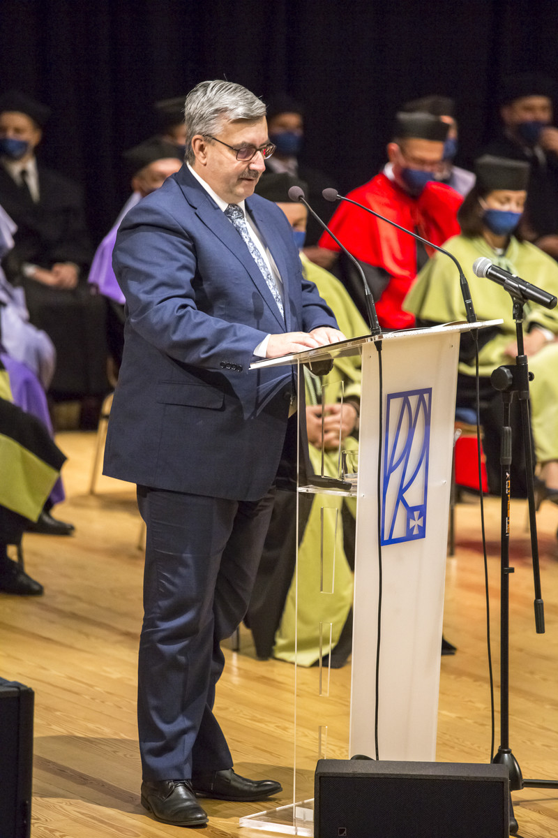 JM Rektor prof. dr hab. inż. Piotr Koszelnik wygłosił przemówienie inauguracyjne, w którym podkreślił jubileuszowy charakter wydarzenia. Rektor wskazał rolę badań naukowych jako tego elementu gospodarki, który jest kluczowy dla funkcjonowania społeczeństwa. Rektor mówił również o wzmacnianiu kadry naukowej i roli rad dyscyplin, które koordynują badania w swoich zakresach. Rektor, odnosząc się do sytuacji epidemicznej, podkreślił, że jako władze Politechniki Rzeszowskiej „jesteśmy odpowiedzialni za bezpieczeństwo pracowników, studentów i doktorantów. To bezdyskusyjne i tak działamy. Na drugiej szali musimy położyć odpowiedzialność zarówno za jakość badań naukowych, jak i kształcenia. Taka jest powinność i misja naszego zawodu – zawodu nauczyciela akademickiego. W tej sytuacji nie mogliśmy pozwolić na nadmierne kształcenie w formie tylko zdalnej. Inżyniera można wykształcić tylko w kontakcie z laboratorium i z praktyką. Oczywiście jesteśmy czujni i będziemy reagować w razie zagrożeń, ale ten kierunek jest niezmienny”.