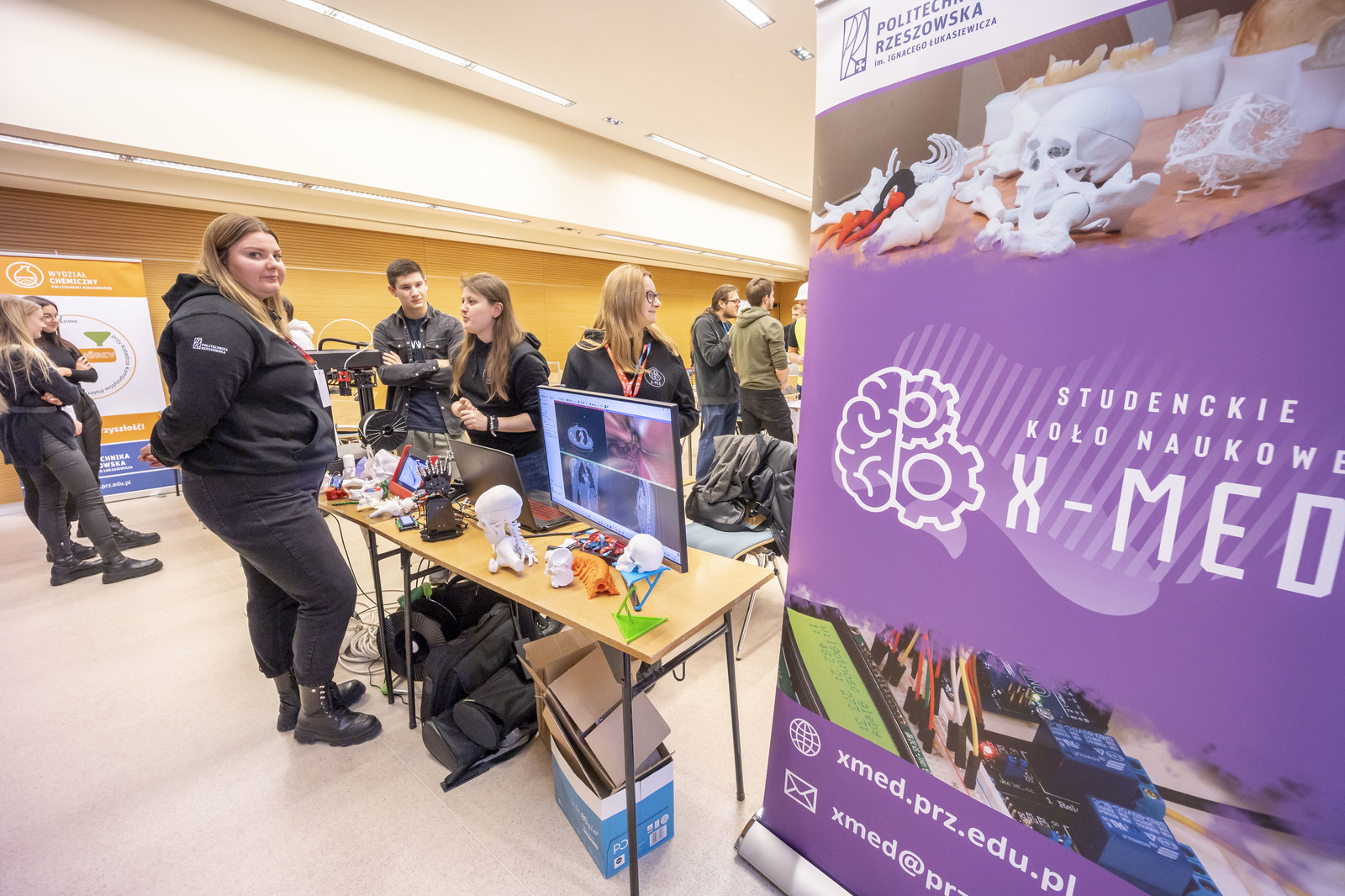 W budynku Centrum Dydaktyczno-Konferencyjnym i Biblioteczno-Administracyjnym Politechniki Rzeszowskiej odbyła się VI edycja kolażu kół naukowych organizowana przez Samorząd Studencki Politechniki Rzeszowskiej. W wydarzeniu wzięły udział koła naukowe oraz organizacje studenckie z wszystkich wydziałów naszej uczelni. Stoiska kół naukowych odwiedzili m.in. rektor prof. dr hab. inż. Piotr Koszelnik oraz prorektor ds. rozwoju i współpracy z otoczeniem prof. dr hab. inż. Jarosław Sęp.