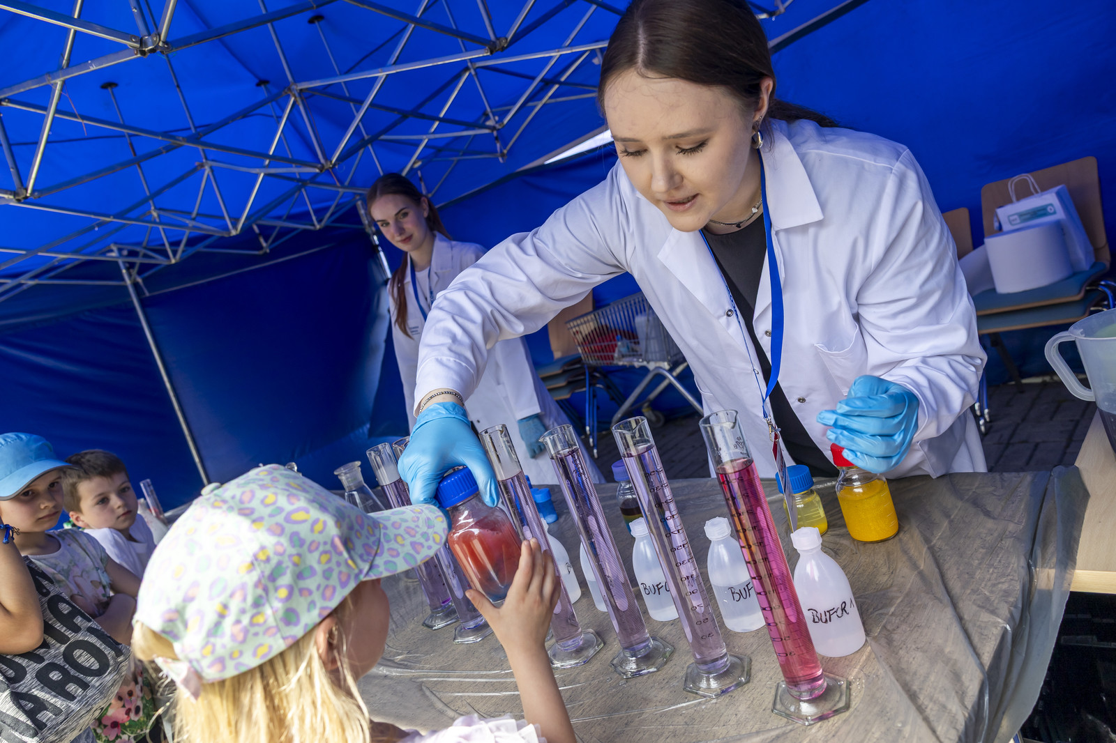 Na miłośników wybuchowych atrakcji czekali studenci Koła Naukowego „ESPRIT”, którzy przygotowali spektakularne pokazy chemiczne. Uczestnicy mogli również wysłuchać ciekawych wykładów –„Kosmiczną archeologię” opisywała Magdalena Ithilnar Stawniak, postać „Wyspiańskiego – Odkrywcy” przybliżyła Jolanta Bobala, a o „Prompt engineering, czyli jak dogadać się ze sztuczną inteligencją?” opowiedział Marcin Krawczyk. Mali i duzi odkrywcy spotkali się również z Magda „Cathia” Kozłowska zabrała małych i dużych odkrywców w podróż po galaktyce w ramach prelekcji nt. „Gwiezdnowojenna droga bohatera, czyli monomit w Gwiezdnych Wojnach”. Pokazy fizyczne Koła Naukowego FOTON („Jak fizyka wprawia świat w ruch”) oraz pokazy wysokich napięć i galeria lamp plazmowych Teslacoil jak zawsze przyciągnęły tłumy widzów. Na „Noc z gwiazdami”, czyli na finałowy pokaz pikniku zaprosili Małgosia Wilczak i Paweł Pasterz wraz z gościem specjalnym Maciejem Milczanowskim.
