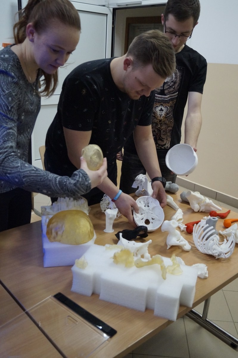 Wydruki 3D, od projektu 3D do gotowego modelu fizycznego są realizowane przez samych studentów pod okiem pracowników Katedry Inżynierii Medycznej.