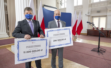 Minister edukacji i nauki wręczył czeki dla Politechniki Rzeszowskiej na informatyzację oraz na projekty studenckich kół naukowych.