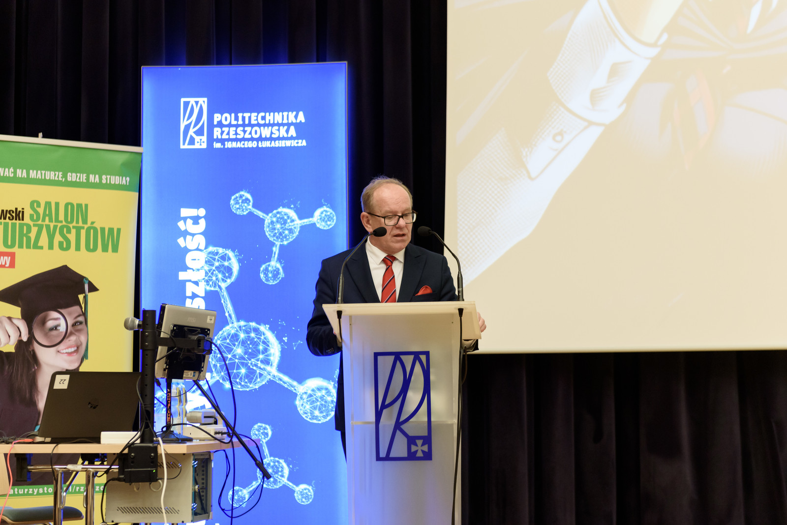 Rzeszowski Salon Maturzystów 2024 został uroczyście zainaugurowany 26 września br. Politechnikę Rzeszowską reprezentowali prorektor ds. kształcenia dr hab. Iwona Włoch, prof. PRz oraz prorektor ds. studenckich i umiędzynarodowienia dr hab. inż. Bartosz Miller, prof. PRz. Obecni byli także wicewojewoda podkarpacki Wiesław Buż, Monika Neusser z Wydziału Edukacji Urzędu Miasta Rzeszowa, podkarpacki wicekurator oświaty Piotr Zych oraz dyrektor Okręgowej Komisji Egzaminacyjnej w Krakowie Lech Gawryłow.