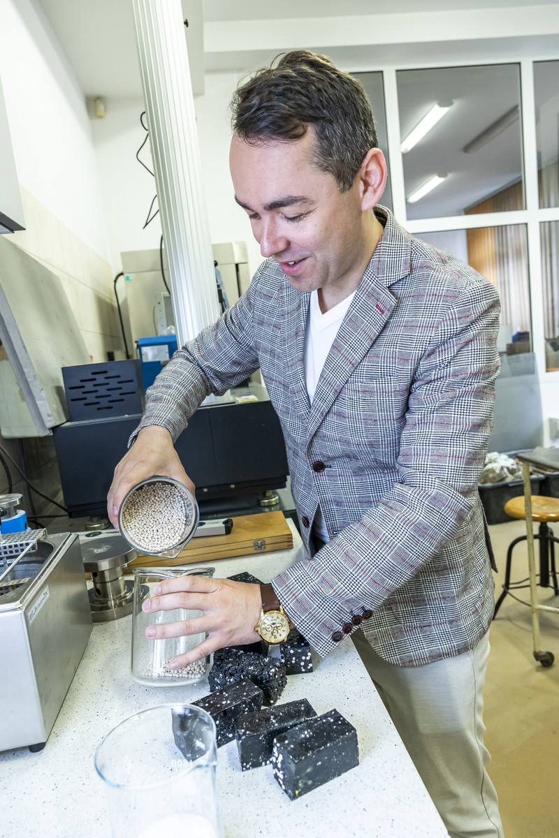 Dr inż. Michał Musiał z Katedry Budownictwa Ogólnego na Wydziale Budownictwa, Inżynierii Środowiska i Architektury realizuje zadania badawcze w ramach wniosku „Badania innowacyjnego akumulatora ciepła opracowanego w oparciu o krzemionkowe sita molekularne, organiczny materiał zmiennofazowy oraz recyklat węglowy”. Prace polegają na opracowaniu oraz wykonaniu badań nad nowymi kompozytowymi akumulatorami ciepła, które mogą być stosowane zarówno w budynkach, jaki i w samochodach elektrycznych.